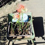 昨年の秋にポットで保存したヒガンバナの苗を観賞用の花壇を作って植えます。