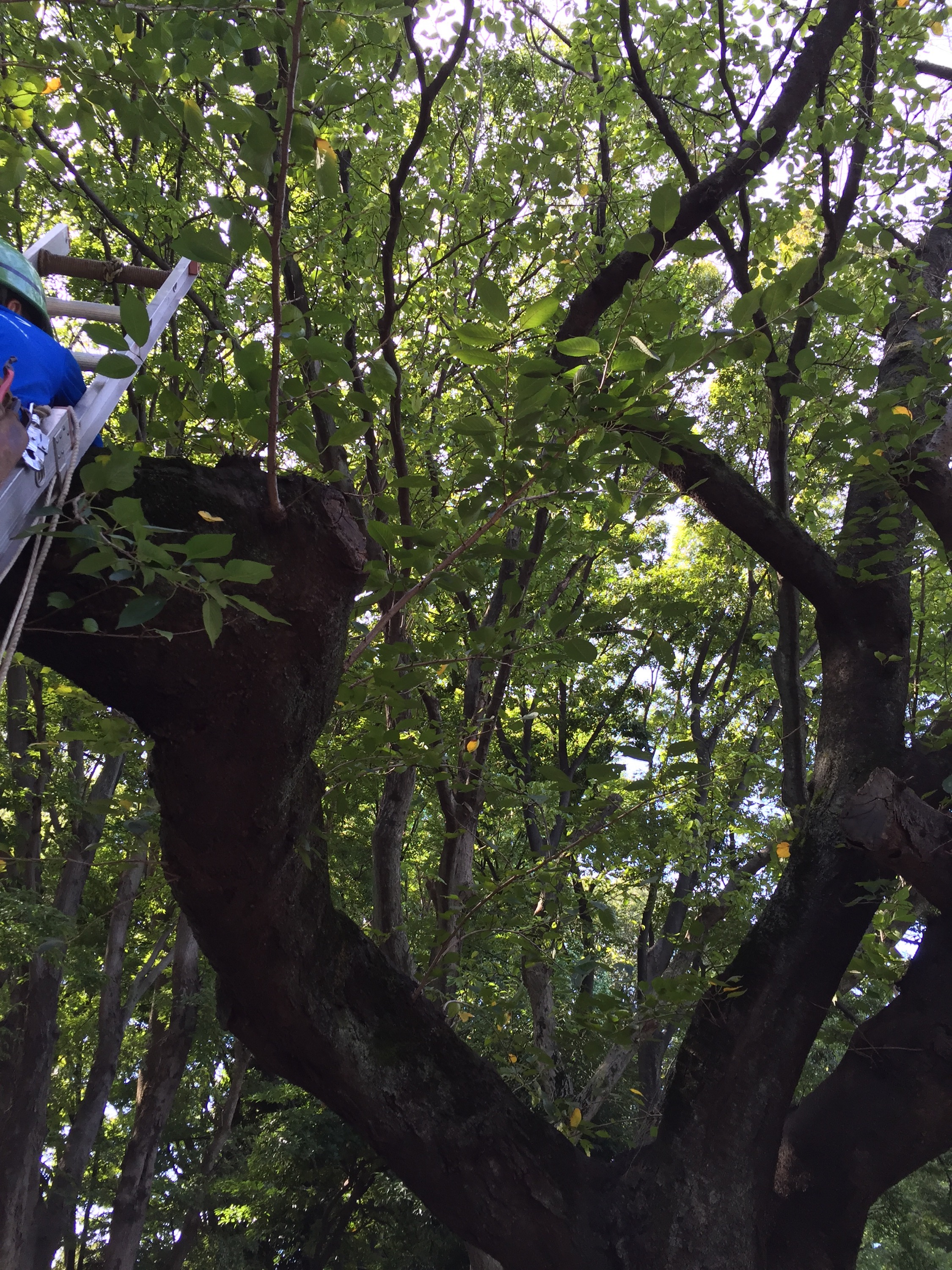 サクラの徒長枝を剪定します。