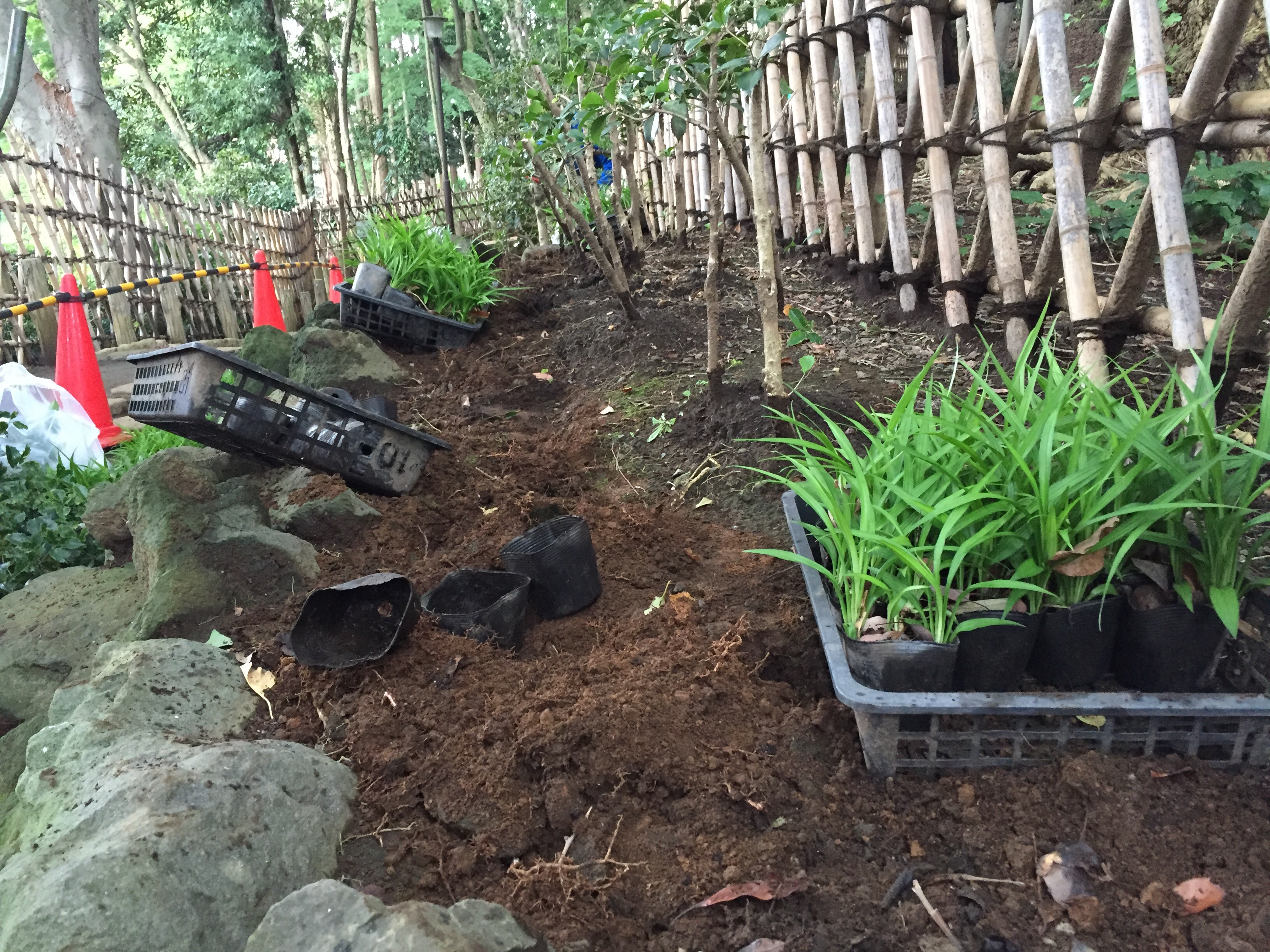 ポット苗で一年間育てたキチジョウソウ。 植え込みの下草として、植栽します。